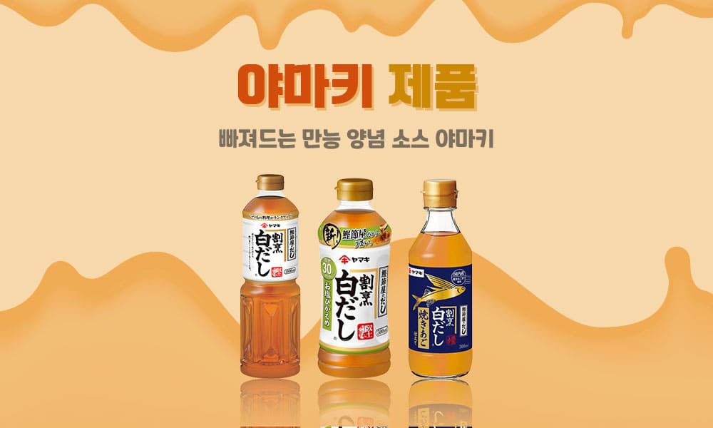 식품기획전 포스트빠져드는 만능 양념 소스 야마키 야마키 소스 기획전 가루/분말류 야마키 면 쯔유 1000ml ₩ 1,140 국물 한 줄기의 기술이 이끌어내는 가다랑어포의 향기로운 향과 맛. 장바구니 야미키 기타 제품 기획전 가루/분말류 야마키 신센이치방 가쓰오 팩 2.5g×10P ₩ 329 "갓 깎은 식감 그대로" 토핑 용도로 특히 맛있는 가다랭이포입니다. 장바구니 식품 돼지 샤브 야채 냄비 츠유 카츠오 750g ₩ 378 쿠라사키 제조 가다랭이에서 취한 농후한 가다랭이에 새우의 맛을 더해 알맞은 짠맛으로 완성했습니다. 장바구니