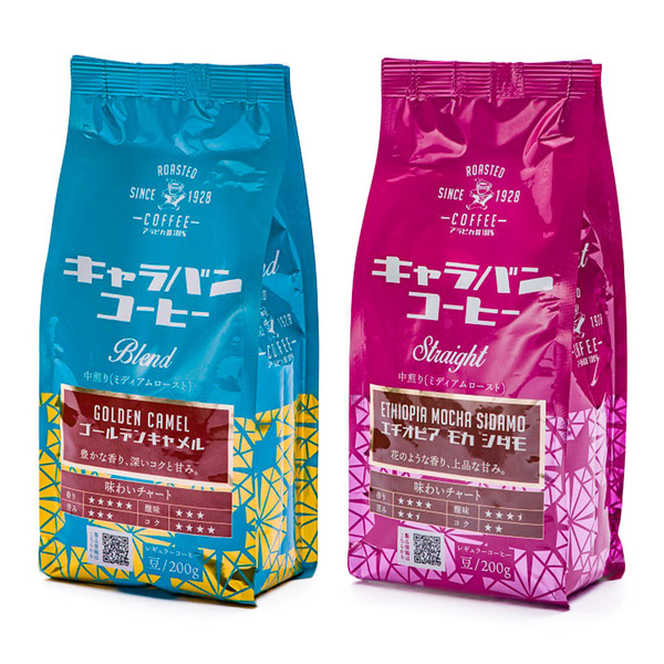부드러운 단맛과 깊은 맛, 풍부한 향을 가진 캐러밴 커피의 간판 브랜드 “골든 낙타”와 꽃의 달콤한 향기와 부드러운 신맛, 고급 단맛이 특징 에티오피아 산 ‘모카 시다모’2 종 세트입니다.
