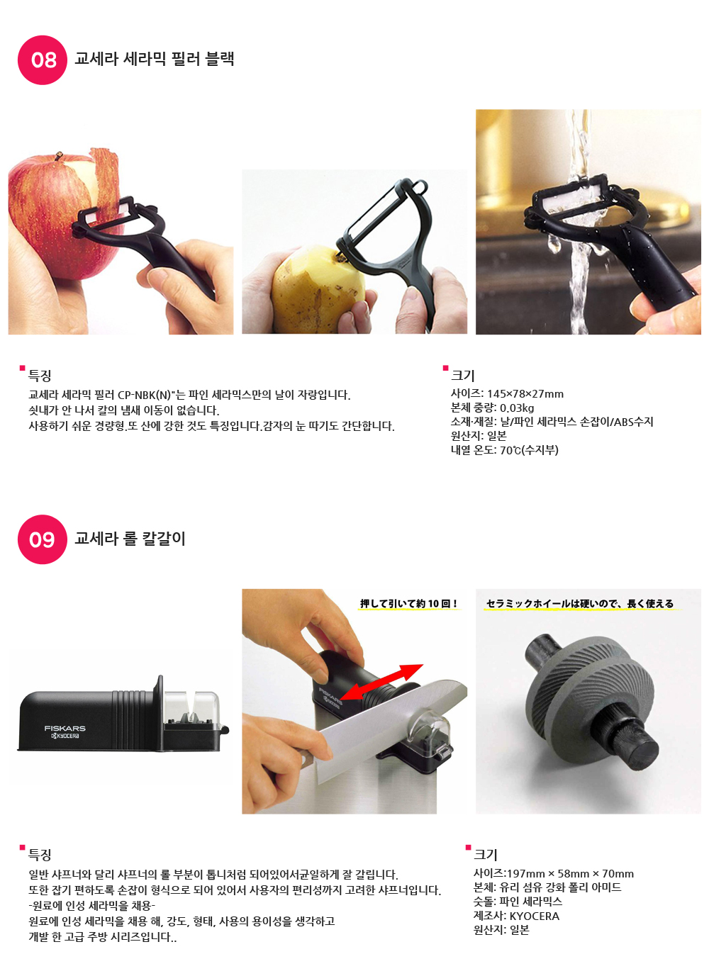미끄러짐을 방지하는 고무가 달려 있어, 안정적으로 식재료를 자를 수 있습니다. 식세척기 대응(내열온도 100도)