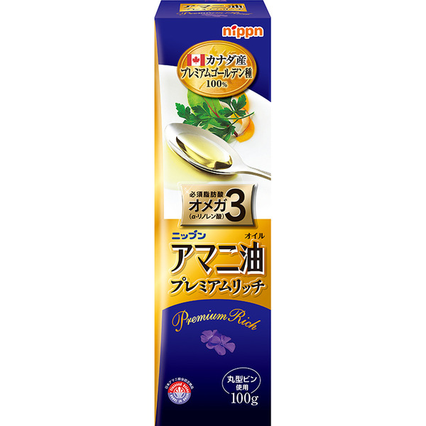 오메가 3가 30 % 많이 함유 된 캐나다 산 골든 종 원료를 사용한 풍부한 아마씨 기름입니다. 아마씨는 아마라는 식물의 씨앗 (仁)입니다. 닛뿐의 아마씨 기름은 캐나다 산 ‘골든 종 100 % 사용. 저온 압착 법으로 정중하게 착유하고 콩기름과 유채 기름으로 사용되는 제초제를 사용하지 않습니다. 아마씨 기름에는 오메가 3 (n-3 계) 지방산의 하나 인 α- 리놀렌산이 풍부하게 포함되어 있습니다. 패키지 사진은 예고없이 변경 될 수 있습니다.