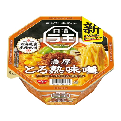 닛신 라오 농후 토로쥬쿠 미소 라멘은 일본 홋카이도산 쌀누룩 된장(米麹味噌)과 진한 감칠맛이 특징인 프리미엄 컵라면입니다. 두꺼운 면발과 깊은 맛의 국물이 조화를 이루며, 풍부한 감칠맛을 느낄 수 있는 라멘으로 유명합니다.