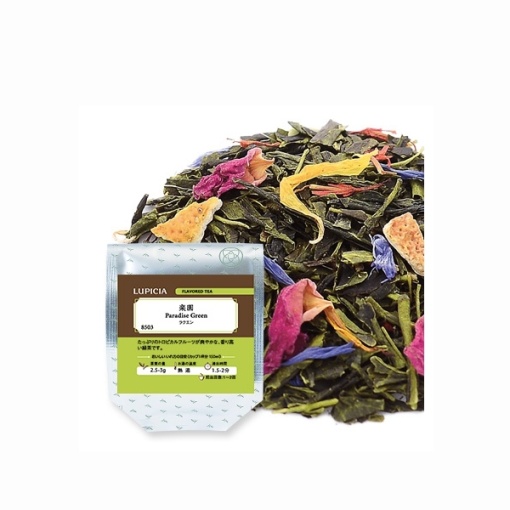 풍부한 열대 과일이 상쾌한 향기 높은 녹차입니다.