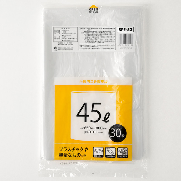 45L 반투명 쓰레기 봉투입니다. 쓰레기나 음식물 쓰레기 등에 매우 적합합니다.