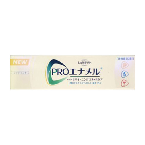 【지각과민】【충치 예방】그락소·스미스크라인의 「슈미텍트 프로에나멜 부드럽게 화이트닝 에나멜 케어 리치민트」는 화이트닝 에나멜은, 지각 과민의 원인의 하나인 산에 의한 마모, 산식치(산쇼쿠시)에 주목 개발된 치약입니다. 트윈 실리카가 치아 본래의 흰색을 유지합니다. 또, 불소(불화나트륨)가 치아의 에나멜질을 강하게 딱딱하게 해 충치를 예방. 이온 배리어가 지각 과민으로 기미하는 것을 예방. 의약 부외품.