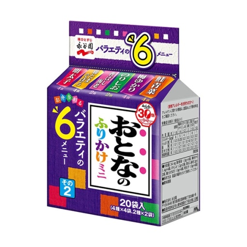 **나가타니엔(永谷園) 어른의 후리가케 미니2 (おとなのふりかけ ミニ その2)**는 일본에서 인기 있는 다양한 맛의 후리가케가 포함된 밥 토핑 세트입니다!