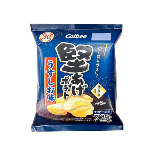 두껍게 썬 감자를 천천히 정성스럽게 튀겨냈습니다. 단단한 식감으로 씹을수록 감자의 맛을 즐길 수있는 감자 칩.우스시오 (소금)맛입니다.
