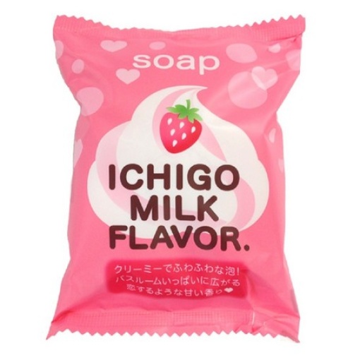 이 제품은 이치고 밀크 플래버 솝입니다. 딸기 우유 향의 비누로, 크리미한 거품과 달콤한 향기를 제공하여 목욕을 더욱 즐겁고 향긋하게 만들어주는 스킨케어 제품입니다.