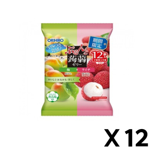 *akao_2866604525 [무료배송] 오리히로 곤약젤리 파우치 매실+라이치 12개입 x 12봉 세트