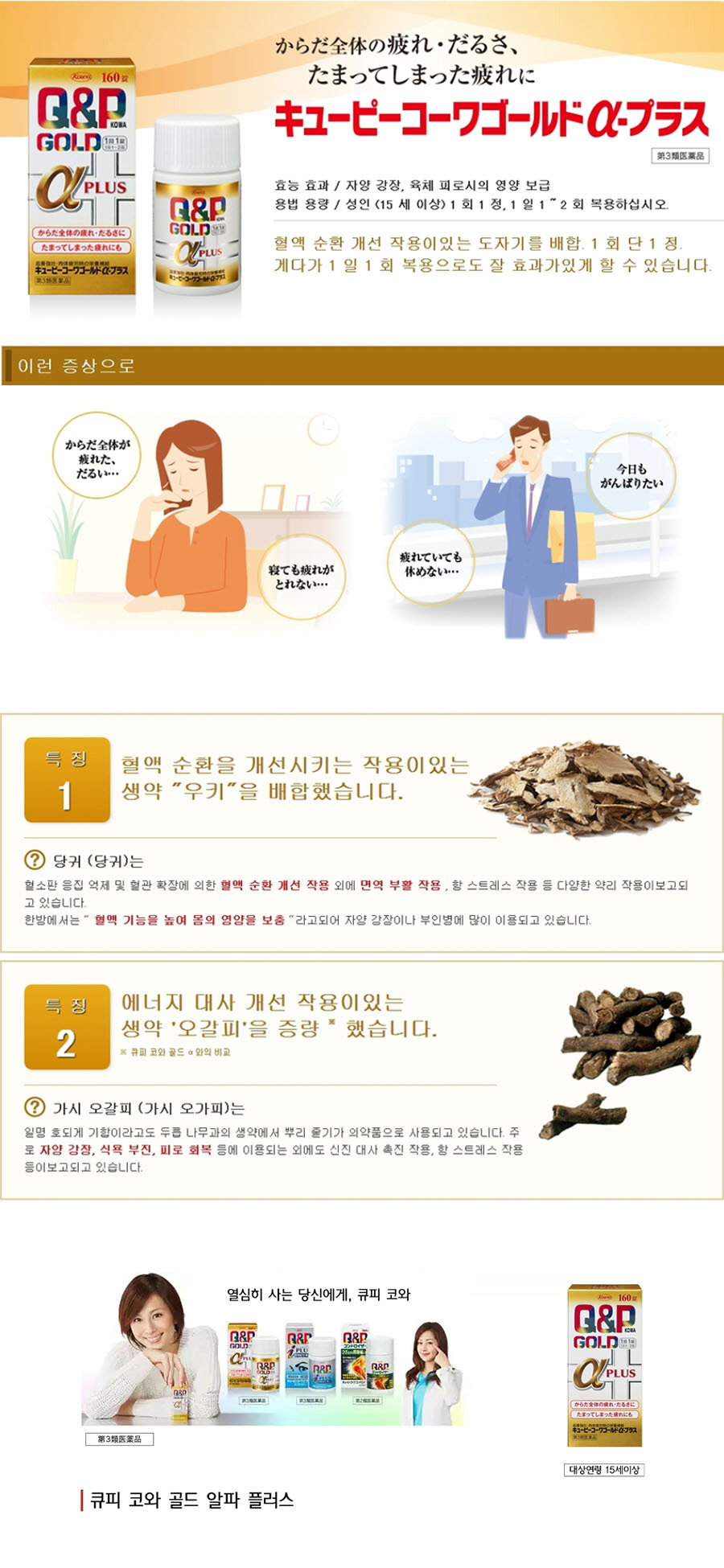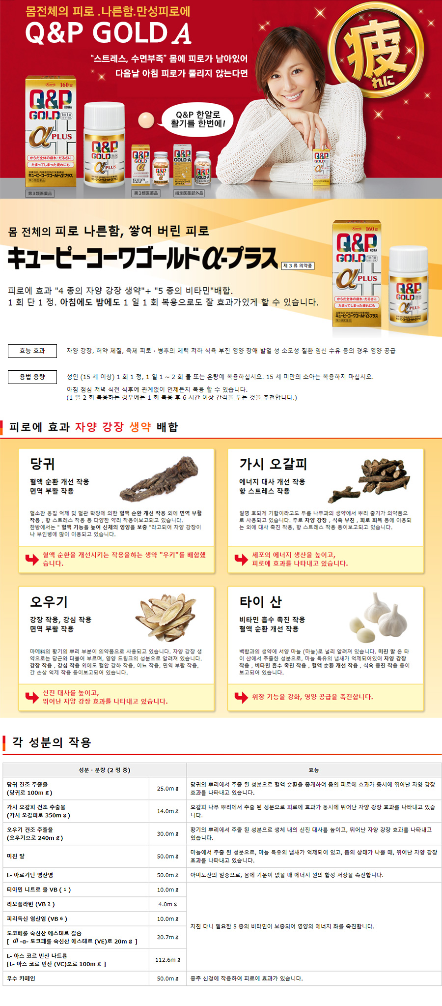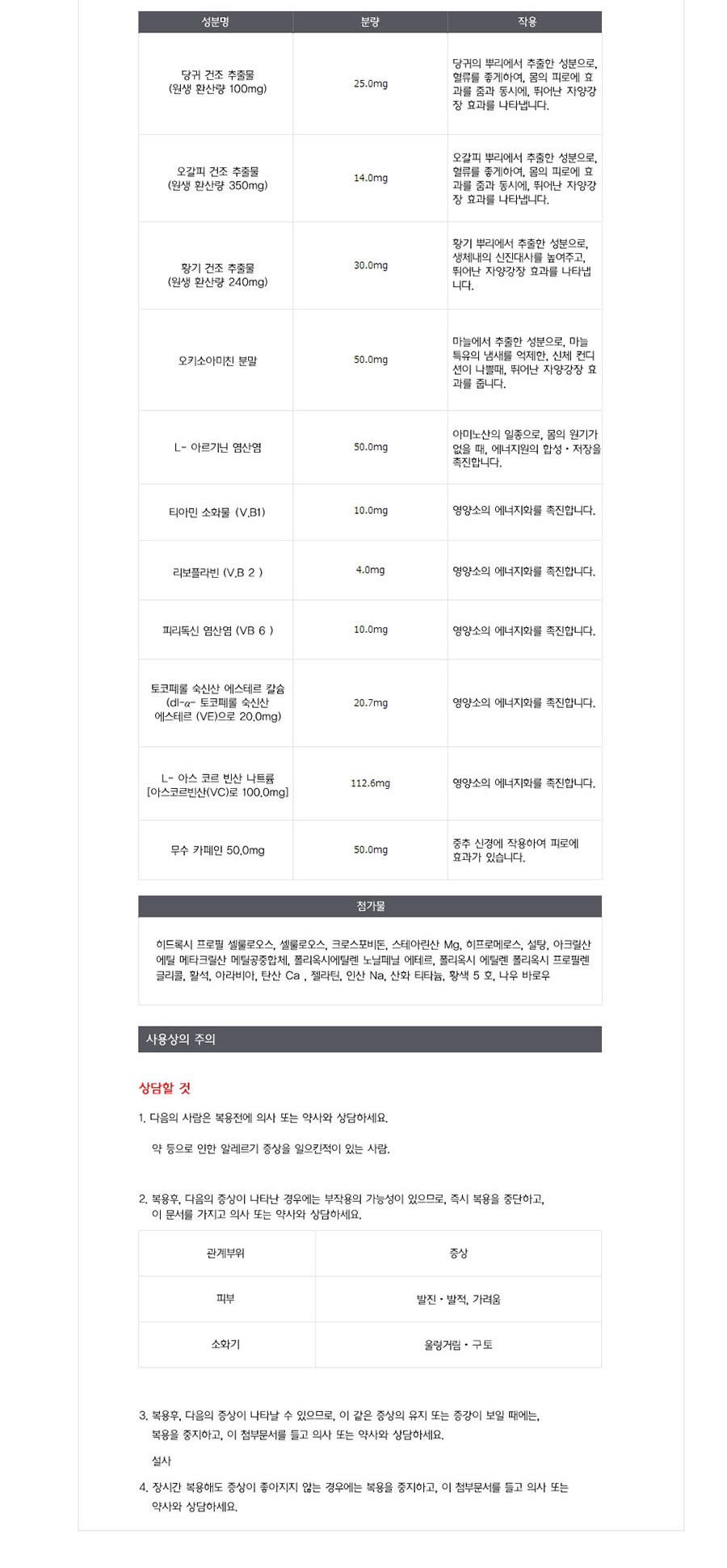 자양 강장, 허약 체질, 육체 피로, 병후의 체력 저하, 식욕 부진,영양 장애, 발열성 소모성 질환, 임신 수유기 등의 경우의 영양 보급